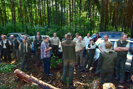 W czwartek 16 czerwca br. odbyła się narada Służby Leśnej na terenie leśnictwa Strugi, dotycząca pozyskiwania i zrywki drewna dłużycowego pozyskanego harwesterem. Na spotkanie zostali zaproszeni przedstawiciele wykonawcy z firmy „Unilas". Celem spotkania było omówienie zagadnień związanych z wykonywaniem systematycznej zrywki i odbiórki surowca wielkowymiarowego.
